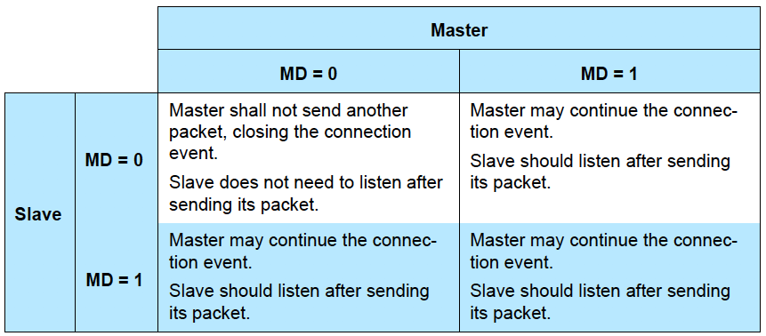 A good description of how the MD bit works can be found in the Bluetooth Core Specification 5