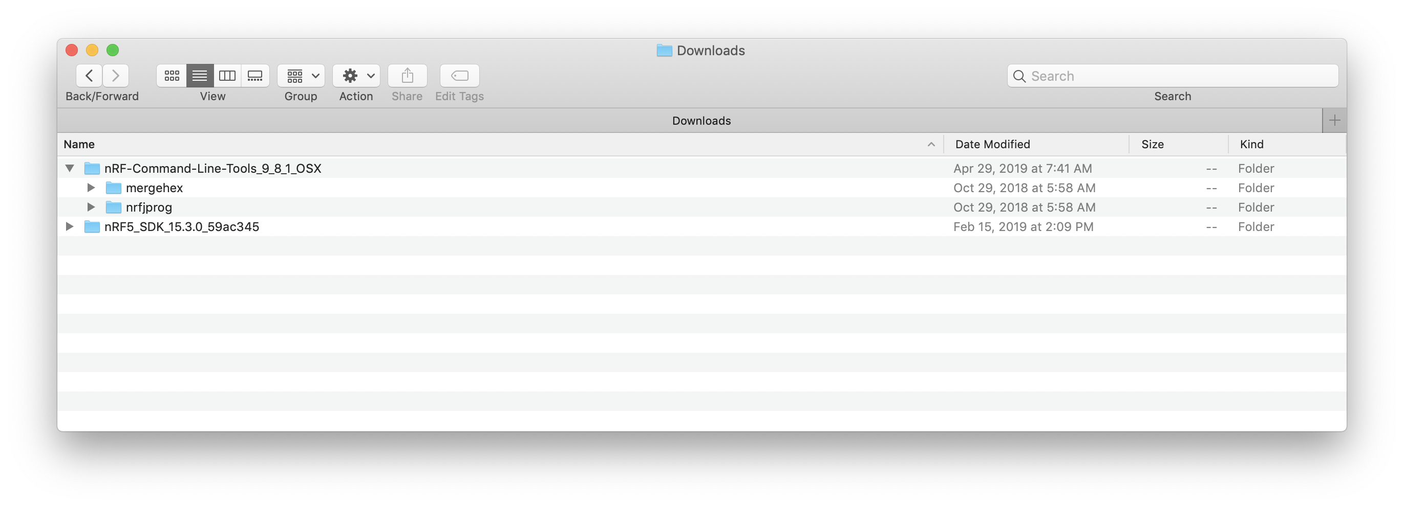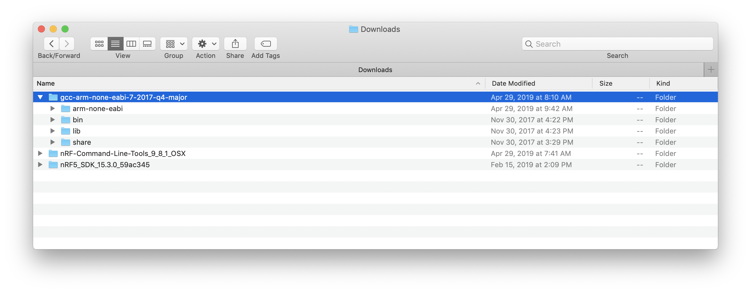 As we mentioned earlier, we’ll be using command line for almost everything in this post. For compiling the application, we’ll be using ARM GCC and GNU Make. For flashing the application to the board, we’ll be using the Nordic Command Line Tools (specifically, the nrfjprog command).