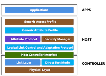 Here’s a diagram showing the different levels of the architecture of BLE: