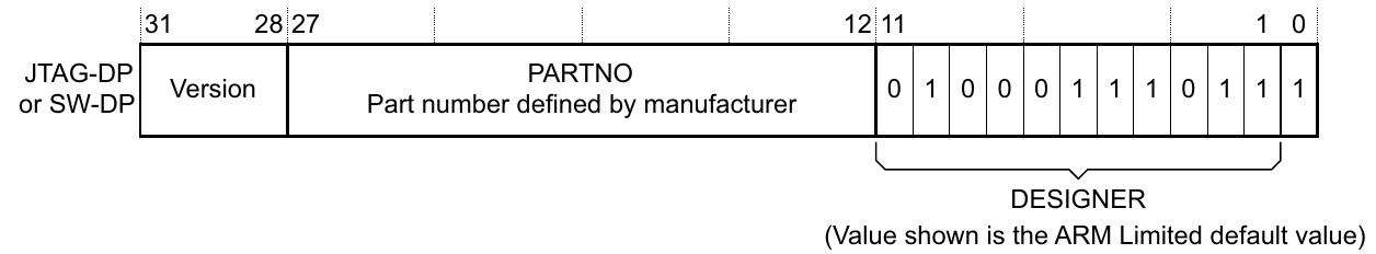 This knowledge is crucial for us because it determines how many bits to send in the JTAG chain and in what sequence to do so when accessing different TAP controllers. According to this information, we can connect to the CoreSight JTAG-DP TAP controller and attempt to read its IDCODE.