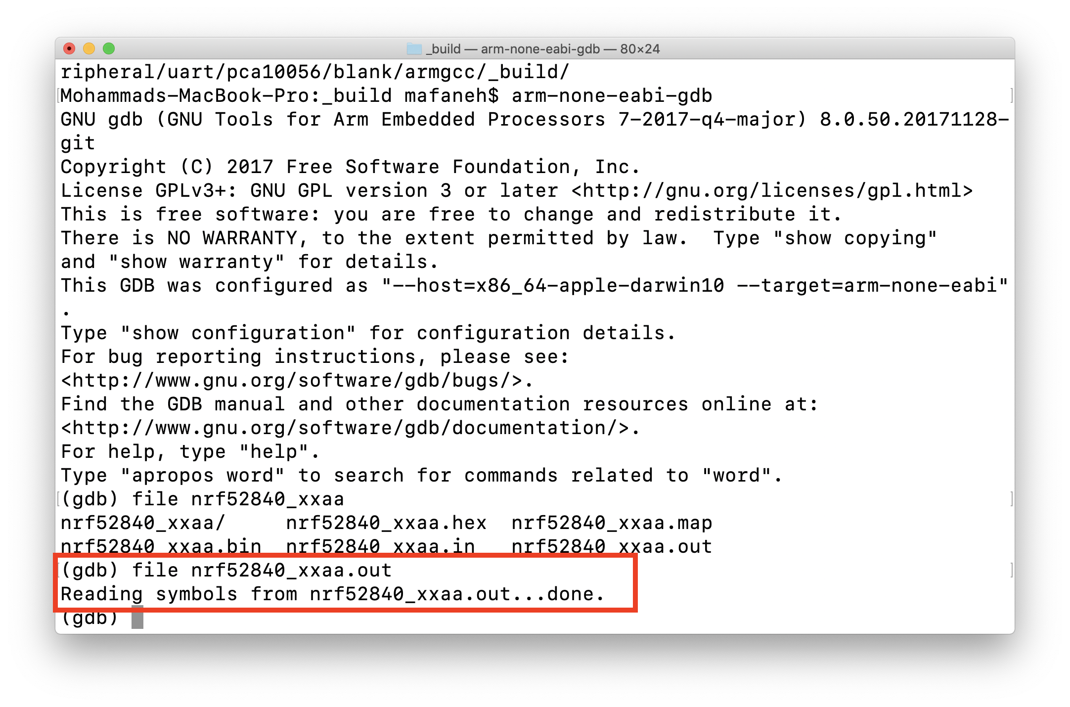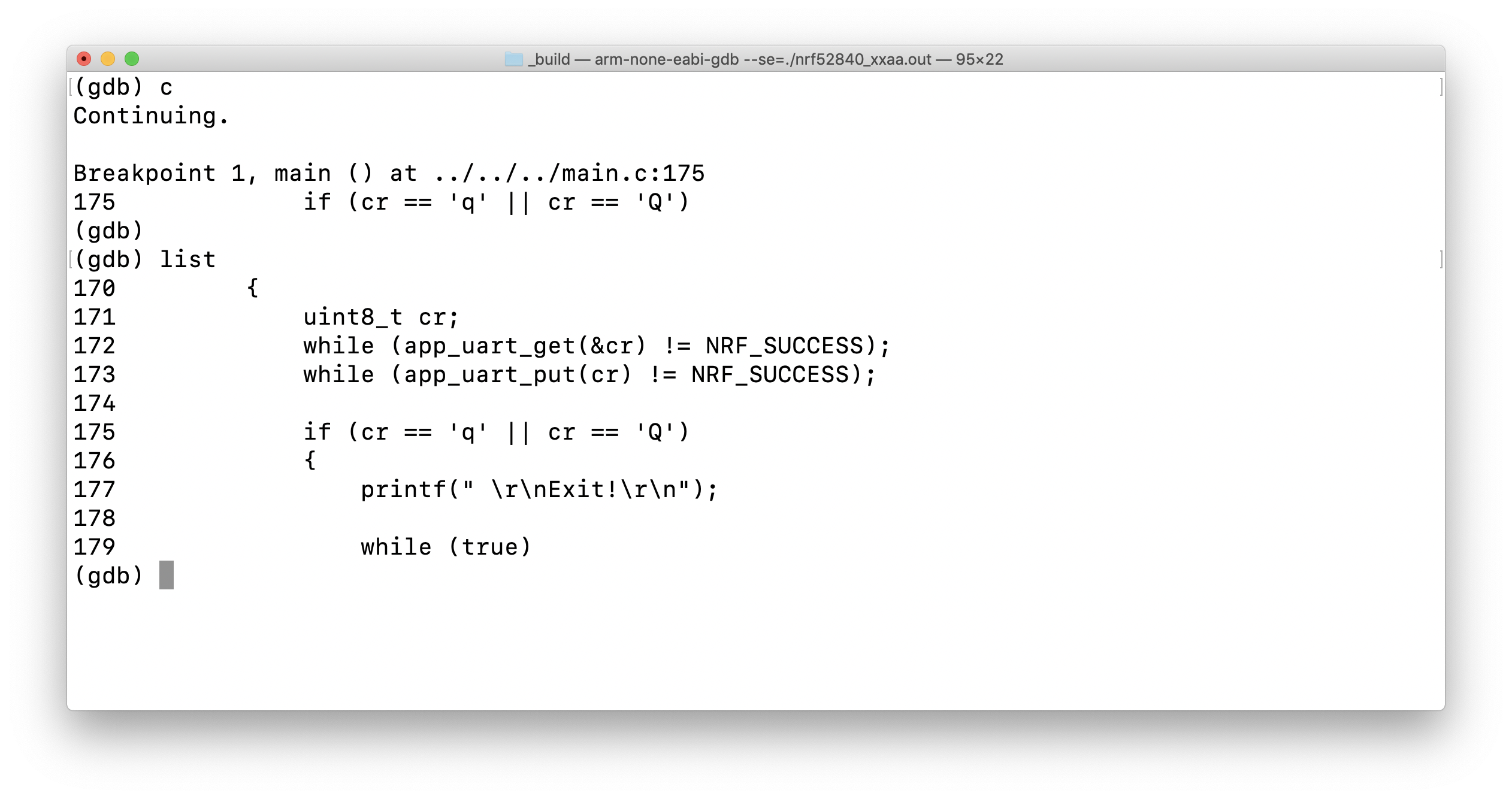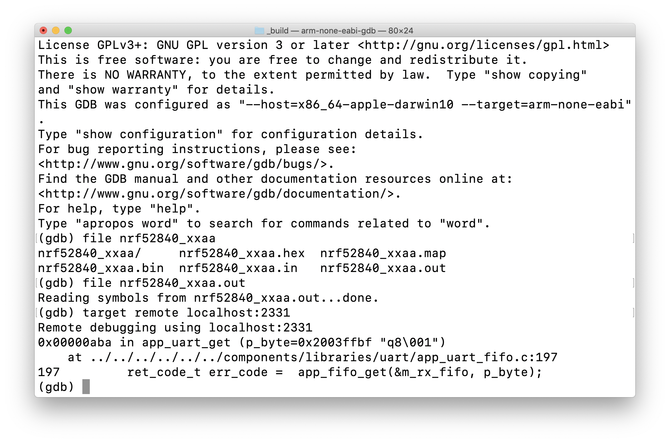 <nRF5_SDK_Folder>/examples/peripheral/uart/pca10056/blank/armgcc/_build/).$ arm-none-eabi-gdb