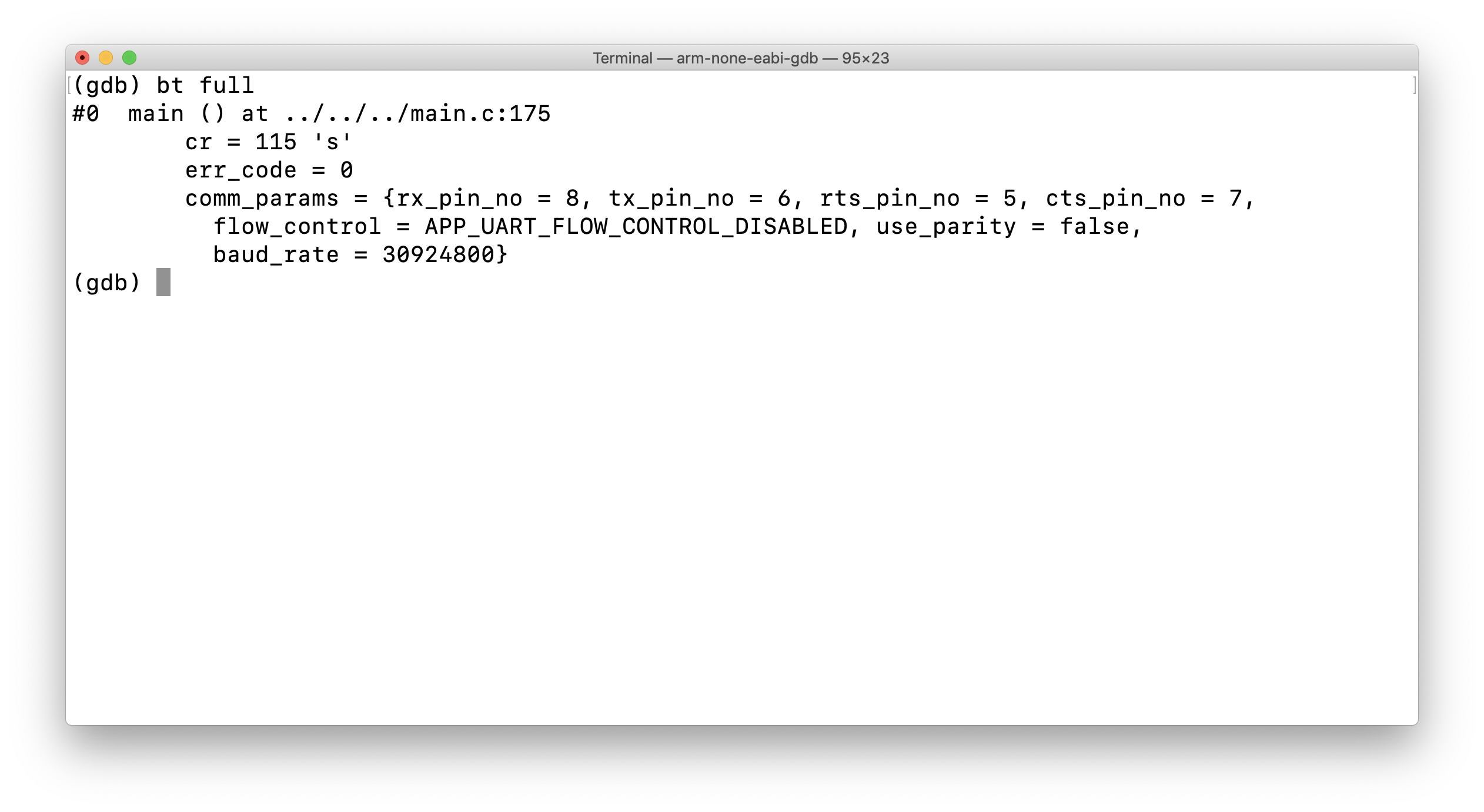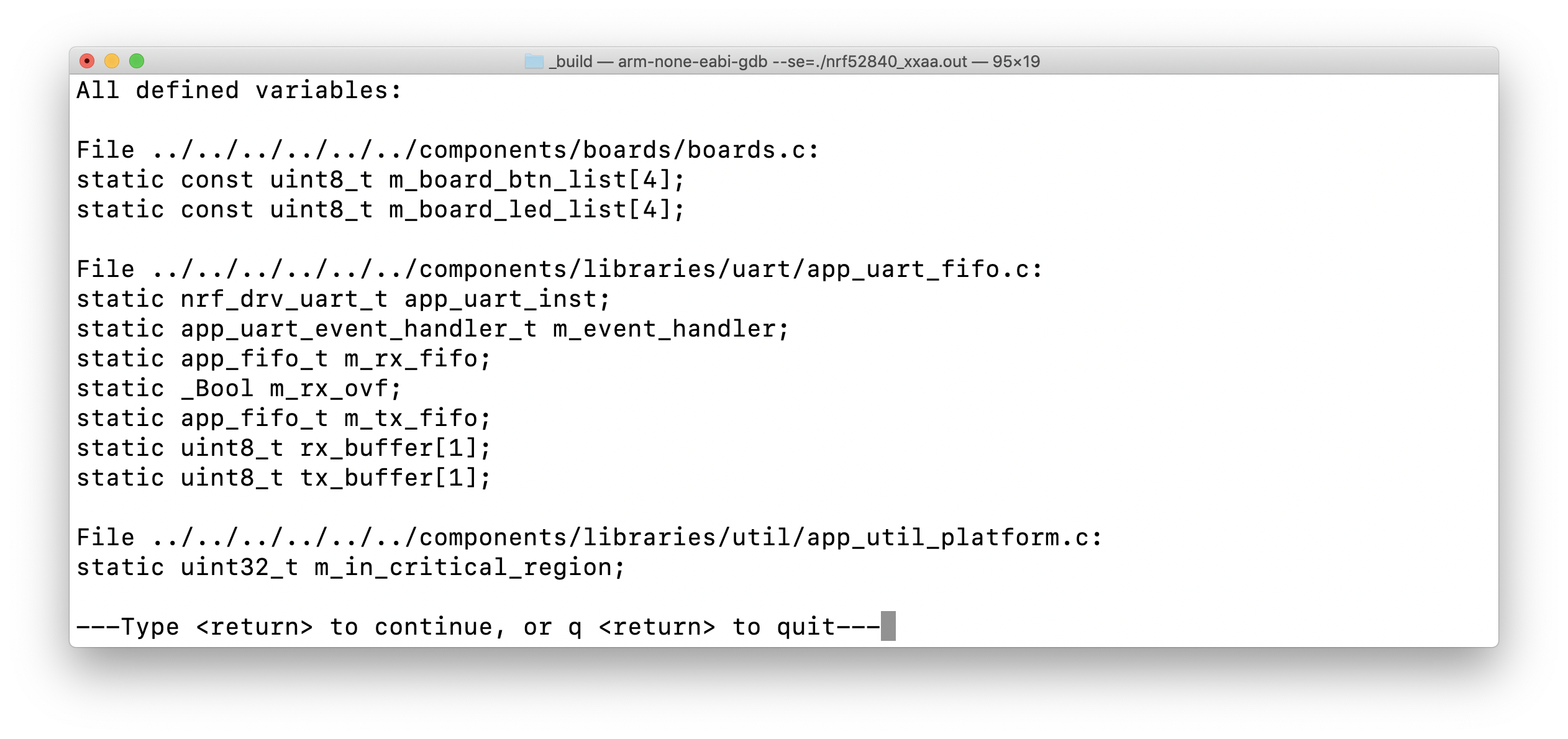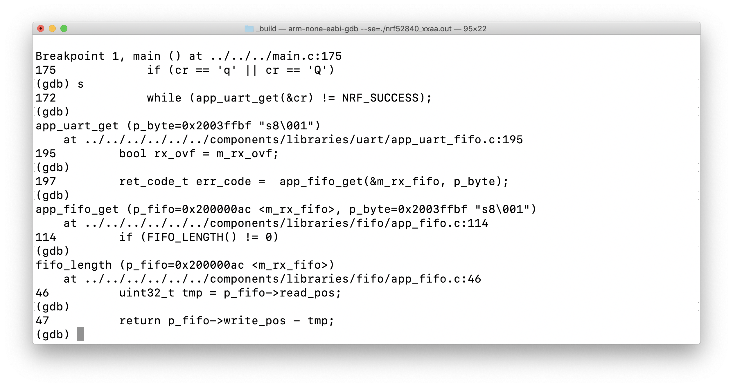<nRF5_SDK_Folder>/examples/peripheral/uart/pca10056/blank/armgcc/_build/).$ arm-none-eabi-gdb