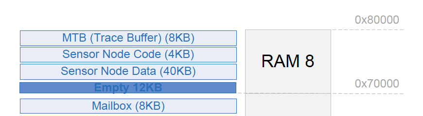 The MCU datasheet can be examined to determine the maximum amount of RAM that can be allocated to the MTB. In the Dialog datasheet we can find this in “Example of Memory Segments Mapping” 5: