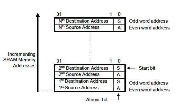Since thumb instructions are always at least half-word aligned, the bottom bit of each word in the packet is used to encode extra information.