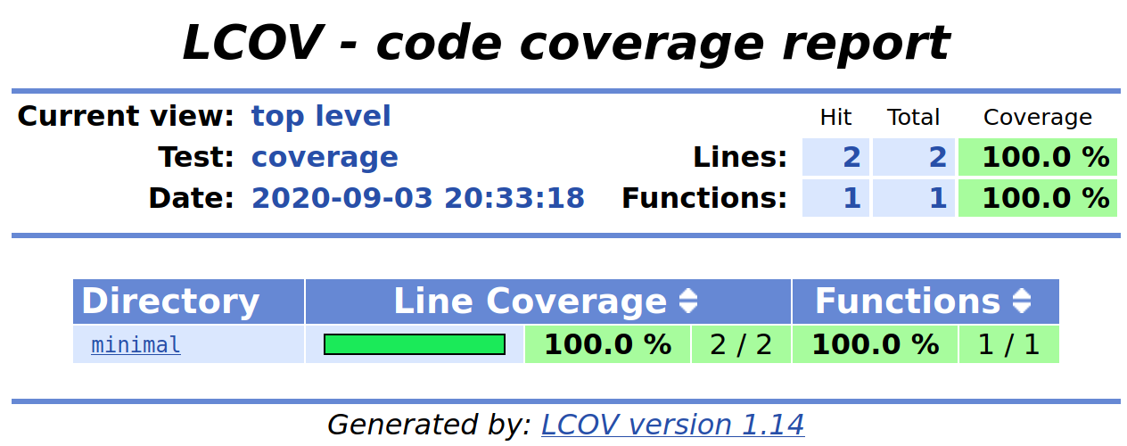 To generate a coverage report for our minimal example, let’s first install lcov.